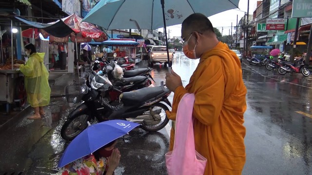 วันนี้ (5 ต.ค.67 ) เนื่องจากเมืองสงขลาฝนตกต่อเนื่องตั้งแต่กลางดึกเมื่อคืนนี้ต่อเนื่องถึงเช้าวันนี้ ส่งผลกระทบกับพระสงฆ์ที่ต้องเดินกางร่มออกรับบิณฑบาตจากประชาชน ในเขตเทศบาลนครสงขลา ท่ามกลางสายฝน มีประชาชนนำอาหารคาวหวาน และอาหารแห้งออกมาตักบาตรพระสงฆ์ตามปกติแม้ว่าจะมีฝนตก โดยพระสงฆ์ต้องเดินกางร่มบิณฑบาตสบงจีวรเปียกปอน แต่ก็ต้องออกเดินรับบิณฑบาตจากประชาชน เนื่องจากเป็นกิจของพระสงฆ์ที่ต้องปฏิบัติ เพราะประชาชนมีความตั้งใจออกมารอตักบาตรพระสงฆ์แม้ว่าจะมีฝนตกก็ตาม โดยฝนตกหนักบ้างเบาบ้างอย่างต่อเนื่องอยู่ตลอดเวลา ประชาชนต้องกางร่มออกมาตักบาตร เช่นเดียวกับพระสงฆ์ก็ต้องเดินกางร่มและถือบาตรรับอาหารจากประชาชนเช่นเดียวกัน