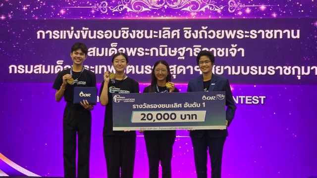 1. รางวัลชนะเลิศ ได้แก่ ทีม C-dots Coating Cell ผลงาน นวัตกรรมสเปรย์ฟิล์มเคลือบผิวโซลาร์เซลล์สำหรับเพิ่มประสิทธิภาพในการผลิตกระแสไฟฟ้าด้วยอนุภาคนาโนคาร์บอนดอทจากวัสดุเหลือทิ้งทางการเกษตรได้รับถ้วยพระราชทานจาก สมเด็จพระกนิษฐาธิราชเจ้า กรมสมเด็จพระเทพรัตนราชสุดาฯ พร้อมประกาศนียบัตรและทุนการศึกษา 30,000 บาท