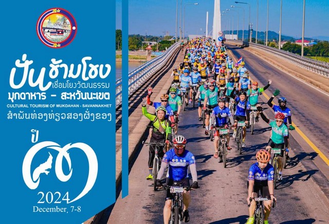 ชมรมเครือข่ายท่องเที่ยว@มุกดาหาร ร่วมกับ สำนักงานการท่องเที่ยวและกีฬาจังหวัดมุกดาหาร การท่องเที่ยวแห่งประเทศไทย สำนักงานนครพนม และแผนกแถลงข่าว วัฒนธรรมและท่องเที่ยวแขวงสะหวันนะเขต ร่วมจัดกิจกรรม “ปั่นจักรยานข้ามโขงเชื่อมโยงวัฒนธรรมมุกดาหาร – สะหวันนะเขต ปี 3 สัมพันธ์ท่องเที่ยวสองฝั่งโขง” ระหว่างวันที่ 7 – 8 ธค. 67 กิจกรรมจัดเป็น 2 รูปแบบ 7 ธค. ปั่นไปเช้าเย็นกลับ และ 7 – 8 ธค. ปั่นแบบพักค้าง 1 คืนกลับรุ่งเช้า