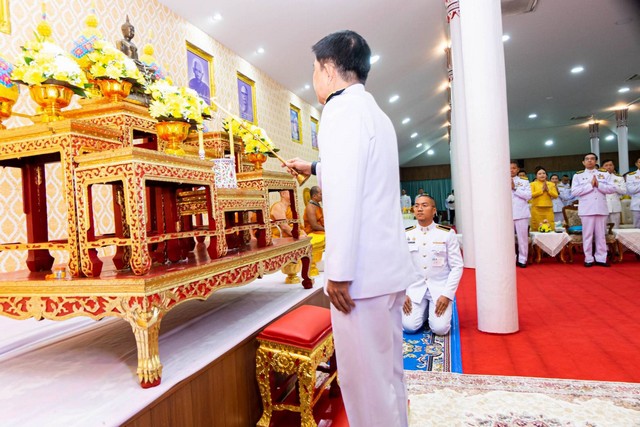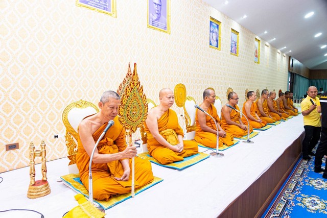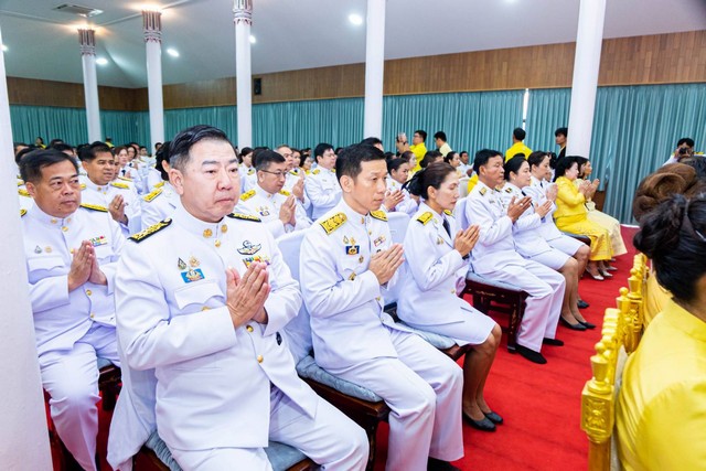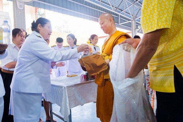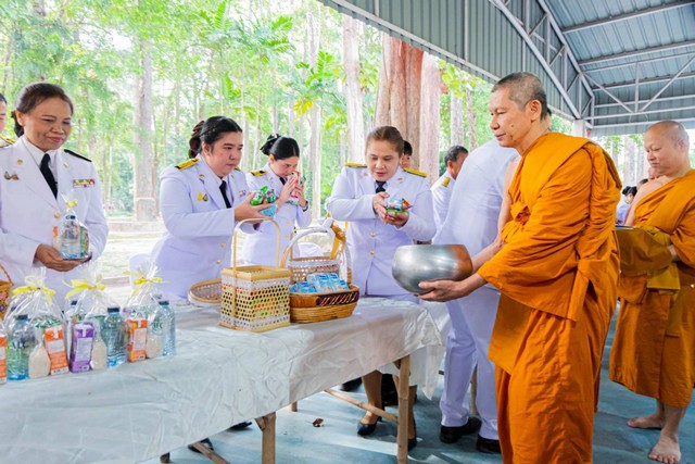 ต่อมาเจ้าหน้าที่ปฏิบัติพิธีสงฆ์อาราธนาศิล พระสงฆ์ให้ศิล เจ้าหน้าที่พิธีสงฆ์อาราธนาพระปริตร พระสงฆ์เจริญพระพุทธมนต์ เจ้าหน้าที่กล่าวคำถวายผ้าไตร ภัตตาหาร จตุปัจจัยไทยธรรม ข้าราชการชั้นผู้ใหญ่จังหวัดนครนายก ถวายภัตตาหารปิ่นโตแด่พระสงฆ์ พร้อมถวายเครื่องจตุปัจจัยไทยธรรมแด่พระสงฆ์ 10 รูป จากนั้นประธานในพิธีเข้าทอดผ้าไตรจำนวน10ไตร พระสงฆ์สดับปกรณ์ พระสงฆ์อนุโมทนา ถวายอดิเรก จากนั้นประธานในพิธีกรวดน้ำรับพร พร้อมร่วมทำบุญตักบาตร(ข้าวสารอาหารแห้ง)พระสงฆ์และสามเณร เป็นอันเสร็จพิธี