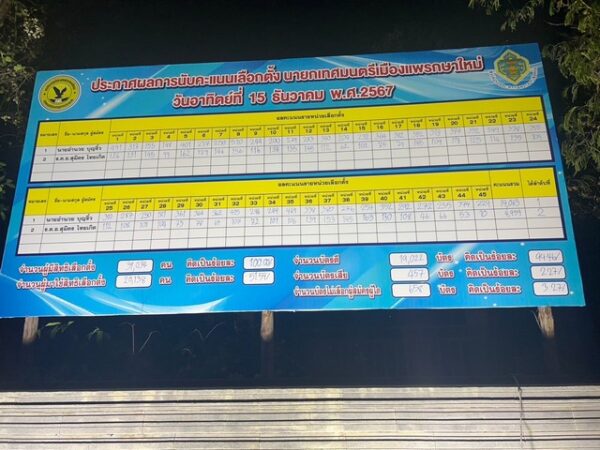 ทาง กกต.ได้ทยอยนับคะแนน ซึ่งผลจากการนับคะแนน ทั้ง 45 หน่วย นายอำนวย บุญริ้ว ได้ 14,063 คะแนน และ ร.ต.อ.สุมิตร ไทยเกิด ได้ 4,595 คะแนน นับได้ว่าคะแนนของ นายอำนวย บุญริ้ว ชนะแบบขาดลอยและเป็นไปตามคาด คงเป็นเพราะเนื่องจากนายอำนวย บุญริ้ว นั้นเป็นที่รักและศรัทธาของทางพี่น้องประชาชนมาโดยตลอด ประกอบกับผลงานที่โดดเด่นและการพัฒนาท้องถิ่นมาอย่างต่อเนื่องจึงทำให้สามารถรักษาเก้าอี้นายกเทศมนตรีเมืองแพรกษาใหม่ได้อีกสมัย