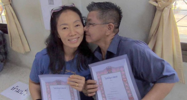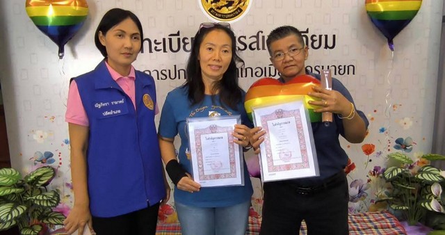 คู่ที่ 3 (หญิงรักหญิง) นางสาวปาริชาติ ขุนสูงเนิน อายุ 52 ปี กับ นางสาวอัจฉรา ดีแสน อายุ 46 ปี มีภูมิลำเนาอยู่ดงละคร อำเภอเมืองนครนายก คบหากันมากว่า 18 ปี ซึ่งทั้ง 3 คู่ก็รอวันนี้คอยเพื่อมาจดทะเบียนสมรสดังกล่าว