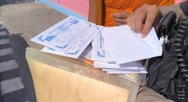นครนายก แม่ค้าตลาดสดโทรแจ้งตร. พบเณรเดินแจกซองผ้าป่าน่าสงสัยในตลาดสดนครนายก