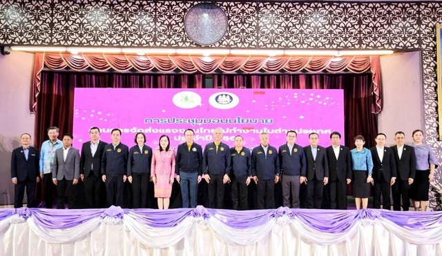 วันที่ 31 มกราคม 2568 นายพิพัฒน์ รัชกิจประการ รัฐมนตรีว่าการกระทรวงแรงงาน เป็นประธานการประชุมมอบนโยบายด้านการจัดส่งแรงงานไทยไปทำงานในต่างประเทศ ประจำปี 2568 โดยมีนายอารี ไกรนรา เลขานุการรัฐมนตรีว่าการกระทรวงแรงงาน นายบุญสงค์ ทัพชัยยุทธ์ ปลัดกระทรวงแรงงาน พร้อมด้วยผู้บริหารกระทรวงแรงงาน ร่วมเป็นเกียรติ นายสมชาย มรกตศรีวรรณ อธิบดีกรมการจัดหางาน กล่าวรายงาน นางสาวอรัญญา สกุลโกศล ประธานสมาคมนายจ้างส่งเสริมแรงงานไทย กล่าวในนามสมาคมฯ และภาคเอกชน และผู้รับอนุญาตจัดหางานเพื่อไปทำงานในต่างประเทศ กว่า 300 คน ร่วมประชุม ณ ห้องประชุม ชั้น 5 อาคารกระทรวงแรงงาน