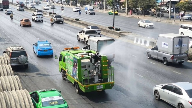 และรถฉีดน้ำทั้งหมดเราจะระดมจากหลายๆ พื้นที่ พรุ้งนี้เช้า D-Day 05.00 น. ปล่อยรถออก รถฉีดพ่นละอองฝอยก็ฉีดพ่นไป จับฝุ่นขนาดเล็กตกลงมาสู่พื้น มีเจ้าหน้าที่ตามฉีดนำ้ล้างถนนก็กวาดมาร่วมเพื่อป้องกันฝุ่นละอองขนาดเล็ก pm2.5 ฟุ้งกระจาย จะทำจนถึงประมาน 07.00 น.แล้วเราจะมาประเมิณว่าปลังจากเราปฎิบัติการแล้วนั้น ฝุ่นมันจะหนาแน่นเหมือนวันนี้ไหม และถ้า พรุ่งนี้มันดีขึ้น เราจะทำทุกวัน นอกจากนี้ฝากพี่น้องประชาชนอย่าตื่นตะหนกว่า น้ำที่เราใช้ฉีดพ่นละอองฝอยนั้นจะมีสารเคมี เราใช้น้ำปะปาสะอาดมาฉีดพ้นอยากให้พี่น้องประชาชนมั่นใจ