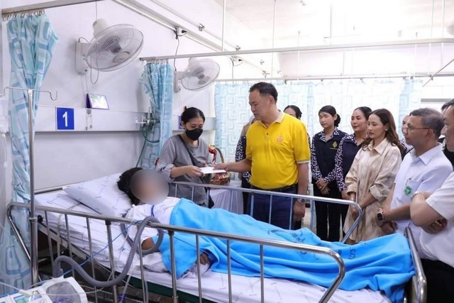 นายอนุทิน ชาญวีรกูล รองนายกรัฐมนตรีและรัฐมนตรีว่าการกระทรวงมหาดไทย ได้พูดคุยสอบถามเหตุการณ์ และให้กำลังใจผู้บาดเจ็บและญาติ พร้อมมอบกระเช้าเยี่ยม และเงินบำรุงขวัญ พร้อมกันนี้ น.ส.ธนนนนท์ นิรามิษ ภริยารองนายกรัฐมนตรีและรัฐมนตรีว่าการกระทรวงมหาดไทย /ที่ปรึกษาสมาคมแม่บ้านมหาดไทย ได้มอบกระเช้าเยี่ยมในนามสมาคมแม่บ้านมหาดไทย เพื่อเป็นขวัญกำลังใจ ให้ผู้บาดเจ็บและครอบครัวด้วย