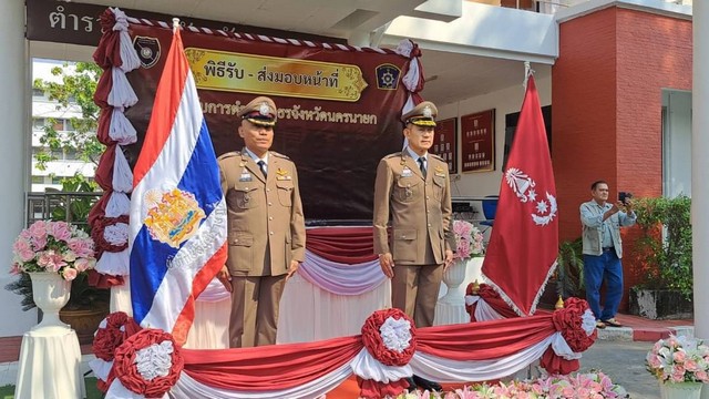 นครนายก – ตำรวจภูธรจังหวัดนครนายก จัดพิธีรับมอบตำแหน่งผู้บังคับการตำรวจภูธรจังหวัดนครนายก เนื่องในโอกาสรับตำแหน่งใหม่