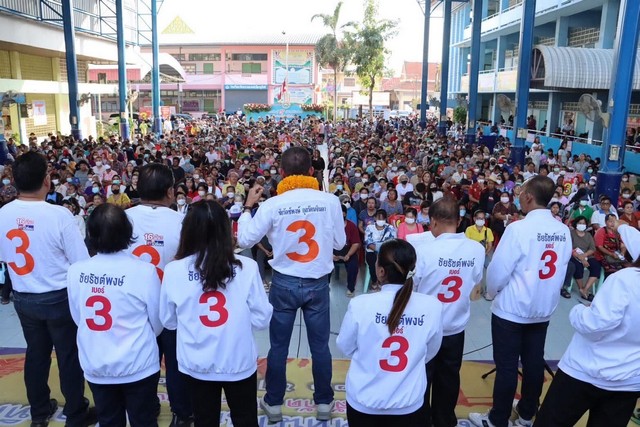 สมุทรปราการ-ชัยรัชต์พงษ์ ขึ้นเวทีปราศรัยชูนโยบายพัฒนาบางแก้ว ประชาชน กว่า 1,000 คน ส่งเสียงเชียร์