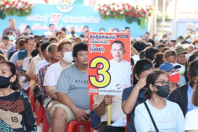 โดยมีพี่น้องประชาชนในเขตพื้นที่ จำนวนกว่า 1,000 คน เดินทางมาร่วมรับฟังการปราศรัยหาเสียงจากกลุ่มผู้สมัครนายกเทศมนตรีเมืองบางแก้ว โดยนายชัยรัชต์พงษ์ ผู้สมัครนายกเทศมนตรีเมืองบางแก้ว หมายเลข 3 กล่าวว่า ตนเองรู้สึกเป็นห่วงพี่น้องประชาชนชาวบางแก้วและกลุ่มผู้สูงอายุ รวมถึงห่วงเรื่องความเป็นอยู่ของพี่น้องประชาชนในเขตพื้นที่บางแก้ว