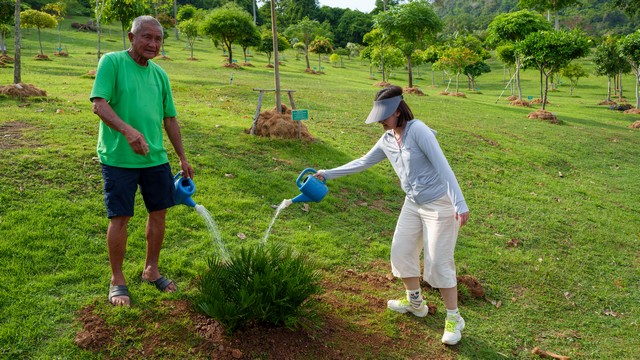 ทั้งนี้เพื่อเป็นการแสดงให้เห็นถึงความร่วมมือและมิตรภาพที่ดีต่อกัน คุณกัมพล ได้เชิญนาย Zhang Shou zhou และDr. Cheng Xinร่วมกันปลูกต้นมะพร้าวทะเลในสวนปาล์มโลก และปรงซาเมีย อินทิกริโฟเลีย บริเวณสวนรุกชาติเชิงเขาบรรไดกฤษ ซึ่งเป็นโครงการที่ทางสวนนงนุชพัทยาได้ขออนุญาติจากกรมป่าไม้ เพื่อทำสวนรุกขชาติ ให้แก่ประเทศไทยรวบรวมพันธุ์ไม้และปลูกไม้ยืนต้นชนิดต่างๆที่มีมูลค่าและหายากจากทั่วทุกมุมโลกมาปลูกไว้ ซึ่งค่าใช้จ่ายและค่าดำเนินการและการปลูกพันธุ์ไม้ต่างๆ ทั้งหมดอยู่ภายใต้การดูแลบำรุงรักษาโดยสวนนงนุชพัทยา