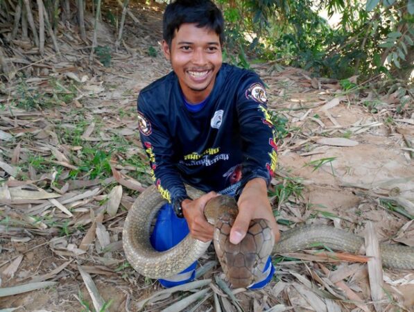 หลังจากนายทวีศักดิ์ ฯ ได้รับแจ้งจึงพร้อมด้วยกู้ชีพ อบต.สะท้อน รีบนำอุปกรณ์ในการจับงูเข้าตรวจสอบและจับทันที