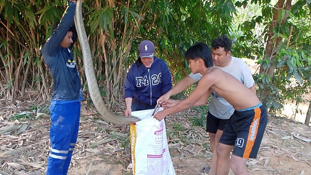 ชาวบ้านผวา จงอางยักษ์ขดตัวกอไผ่หลังบ้าน ไม่กล้าอาบน้ำ วอนทีมปราบอสรพิษ อาสาพิทักษ์งู สงขลา ช่วยจับ