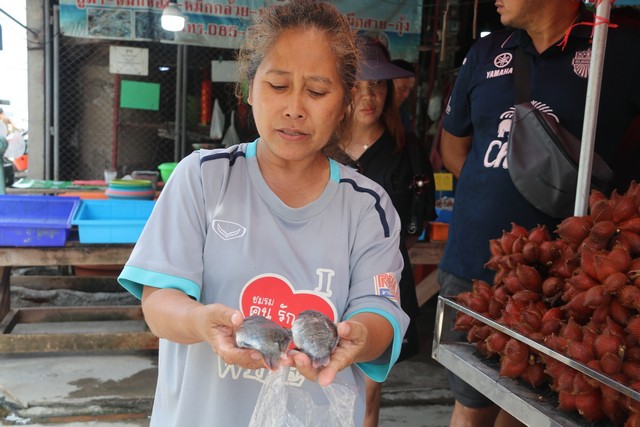 จาการสอบถาม นาง กรองแก้ว พัฒน์แก้ว อายุ52ปี แม่ค้าขายของทะเล กล่าวว่า ลูกชายตนออกไปวางอวนดักปลากระบอก แต่กลับได้ปลาหมอคางดำมาหลายตัว ประมาณคึ่งกิโลกรัม และพบว่าตัวปลาหมอคางดำมีขนาดใหญ่ ซึ่ง ณตอนนี้ จากการออกไปทำการประมง ทั้งปู ปลาหมึก ก็ไม่ค่อยได้ ถ้าได้ก็ได้ ในปริมาณที่น้อยลง ไม่แน่ใจว่าจะเป็นเพราะปลาหมอคางดำ ที่อาจจะไปกิน ลูกปลา ลูกปู หรือไม่