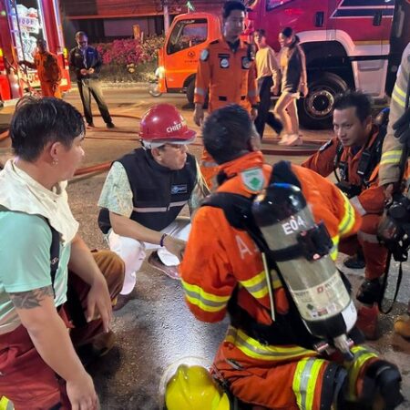 เชียงใหม่-ผอ.การท่าอากาศยานเชียงใหม่ ร่วมบัญชาการปฏิบัติการดับเพลิงเหตุเพลิงไหม้บริเวณชุมชนบ้านใหม่สามัคคี