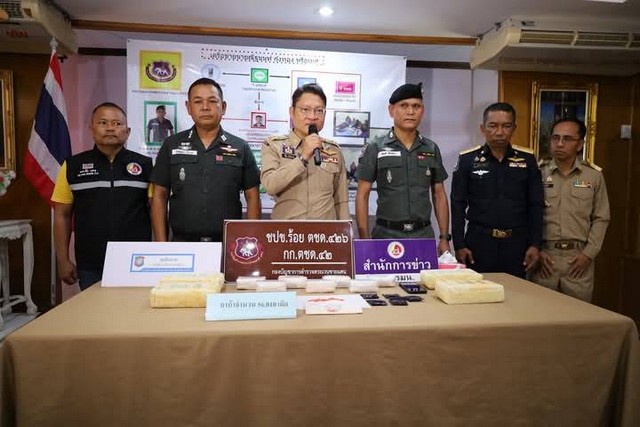 กระบี่-พ่อเมืองกระบี่นำทีมแถลงข่าวการจับกุมผู้ต้องหาพร้อมยาบ้า 56,010 เม็ด