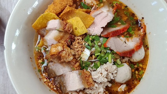 -ก๊วยต้มยำโบราณ หมูกรอบ