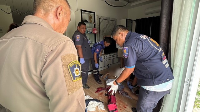เมื่อเวลา 11.30 น. วันที่ 31 พ.ค.68 ร.ต.อ.มินทราทิตย์ ทองใส รอง สว.(สอบสวน) สภ.ห้วยใหญ่ ได้รับแจ้งมีเหตุใช้อาวุธปืนยิงกันมีผู้ได้รับบาดเจ็บ และ คนยิงยังอยู่ในบ้าน เหตุเกิดภายในบ้าน 33/152 ซอย เขามะกอก 6/4 หมู่ 4 ต.ห้วยใหญ่ อ.บางละมุง จ.ชลบุรี หลังรับแจ้ง จึงรายงานให้ผู้บังคับบัญชาทราบ แล้วพร้อมด้วยทีมชุดสืบสวน , ตำรวจสายตรวจ อาวุธครบมือ และเจ้าหน้าที่กู้ภัยสว่างบริบูรณ์ธรรมสถานเมืองพัทยา รีบไปตรวจสอบ
