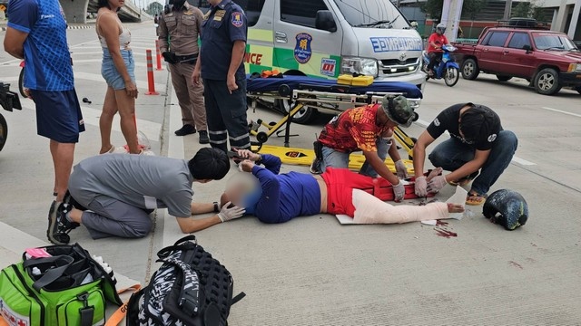 เมื่อเวลา 16.30 น. วันที่ 4 มิ.ย.68 ร.ต.ท สุริยะ อยู่พุ่ม รองสารวัตรสอบสวน สภ.นาจอมเทียน อ.สัตหีบ จ.ชลบุรี ได้รับแจ้งรถ จยย.บิ๊กไบค์ ชนรถเก๋ง มีผู้ได้รับบาดเจ็บบนถนนสุขุมวิท แยกไฟแดงหนองจับเต่า ขาเข้าพัทยา ต.นาจอมเทียน อ.สัตหีบ จ.ชลบุรี หลังรับแจ้ง ได้รีบรุดไปตรวจสอบ พร้อมหน่วยกู้ภัยมูลนิธิสว่างโรจนธรรมสถานสัตหีบ