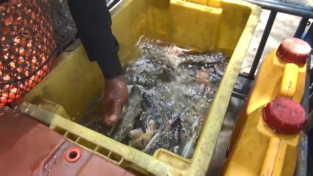 สงขลา-ชาวประมงพื้นบ้านชุมชนบ้านบ่ออิฐ สงขลาได้เฮ !!!! ออกเรือวางอวนปูบริเวณชายฝั่งจังหวัดสงขลา แต่ละลำสามารถจับปูได้ 5 – 7 กก. เนื่องจากในช่วงนี้