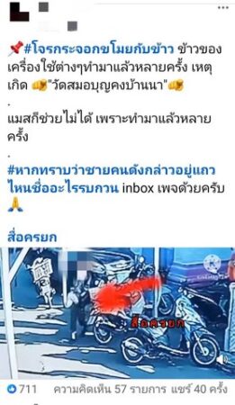 เกิดเหตุมีลุงสูงวัยสวมเสื้อในสีเทาเสื้อคลุมสีน้ำเงินคอปกแดง กางเกงขายาวสีกรมท่าได้เดินวนเวียนดูลาดเลาไปมาใกล้รถจักรยานยน์ที่จอดไว้ในตลาดวัดสมอบุญคง อำเภอบ้านนาโดยเจ้าของได้ซื้อไข่ไก่เบอร์ใหญ่จำนวน 10 ฟองห้อยไว้ที่ห้อยรถจักรยานยนต์ ลุงคนนี้ได้โอกาสก็รีบเดินมาลักไข่ไก่และเดินหลบนี้หน้าตาเฉย ถึงราคาไม่แพงมากก็ไม่ควรทำอย่างนี้