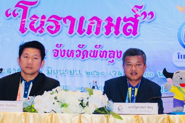 วันที่ 21 มิถุนายน 2568 ณ ห้องประชุมนกยูง 1–2 ชั้น 4 โรงแรมเซนเตอร์ พอยต์ เทอร์มินอล 21 อำเภอเมือง จังหวัดนครราชสีมา นายรัฐศาสตร์ ชิดชู ผู้ว่าราชการจังหวัดพัทลุง พร้อมด้วยนายมงคล วิมลรัตน์ อธิบดีกรมพลศึกษา ดร.พัฒพงศ์ พงษ์สกุล รองอธิบดีกรมพลศึกษา นายสุรัตน์ จรณโยธิน ท่องเที่ยวและกีฬาจังหวัดพัทลุง และคณะผู้แทนจากจังหวัดพัทลุง ร่วมแถลงข่าวรับมอบเจ้าภาพจัดการแข่งขันกีฬาและนันทนาการผู้สูงอายุแห่งประเทศไทย ครั้งที่ 18 ประจำปี 2569 ภายใต้ชื่อ “โนราห์เกมส์” ซึ่งจะจัดขึ้นในช่วงเดือนพฤษภาคมถึงมิถุนายน ปีหน้า ณ จังหวัดพัทลุง