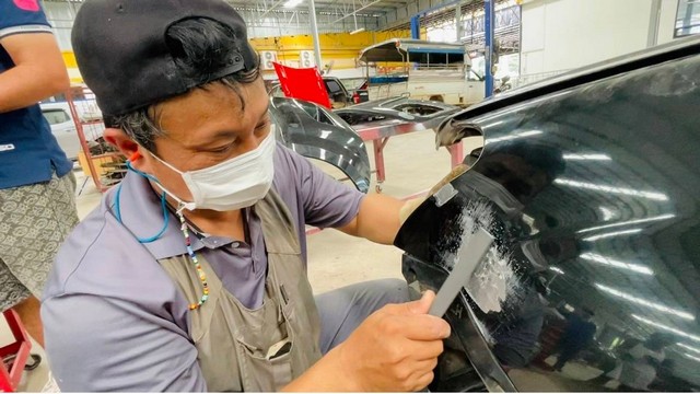 อำเภอเมือง//อู่ซ่อมรถ“พรีเมียมคาร์เพ้นท์”ขนรถส่วนตัวของทหารที่ถูกสะเก็ดระเบิดจรวด BM 21 ระหว่างการปะทะตามชายแดนมาซ่อมให้ฟรี เจ้าตัวเผยตอนนี้รับมาแล้ว 7 คันที่เหลือคาดว่าไม่น้อยกว่า 15 คันระบุรถของทหารส่วนใหญ่จะได้รับบาดเจ็บด้วยอยากให้เขาออกจาก รพ.มาแล้วรับรถได้แบบสบายใจ