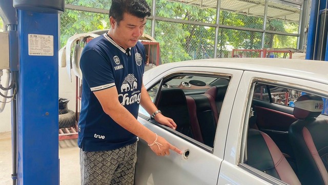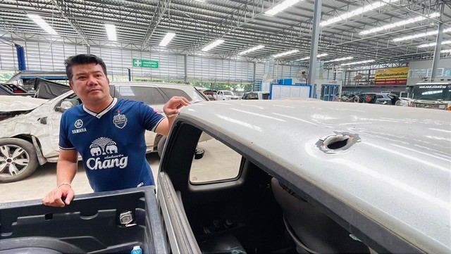 บุรีรัมย์-เสี่ยอู่ซ่อมจัดให้ รถทหารถูกสะเก็ดระเบิดซ่อมรถฟรีไม่อั้น