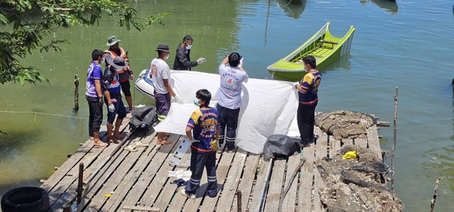 เมื่อวันที่ 8 ส.ค.68 ผู้สื่อข่าวรายงาน เจ้าหน้าที่กู้ภัยโลมาฯ(มูลนิธิกุศลธรรมภูเก็ต) ได้รับการประสานจาก พ.ต.ท.สมนึก ดำแก้ว รอง.ผกก.(สอบสวน) สภ.โคกกลอย ว่ามีคนไปพบร่างผู้เสียชีวิตลอยน้ำ พื้นที่บ้านท่าใหญ่ ม.11 ต.โคกกลอย อ.ตะกั่วทุ่ง จ.พังงา จึงได้เข้าตรวจสอบตรวจพร้อมด้วยเจ้าหน้าที่ฝ่ายปกครอง อำเภอตะกั่วทุ่ง ผู้ใหญ่บ้านจุดเกิดเหตุพบร่างผู้เสียชีวิตลอยน้ำอยู่นอกท่าเรือบ้านท่าใหญ่ซึ่งอยู่ใกล้กับกระชังเลี้ยงปลา จึงประสานขอเรือชาวบ้านกันนำร่างของผู้เสียชีวิต กลับเข้าฝั่ง ตรวจสอบและเคลื่อนย้าย นำส่ง รพ.ตะกั่วทุ่ง