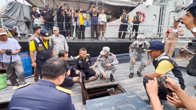 เมื่อเวลา 18.00 น. วานนี้ (14 สิงหาคม 2568) ที่ท่าเทียบเรือฐานทัพเรือสงขลา ทัพเรือภาคที่ 2 พลเรือโท นเรศ วงศ์ตระกูล ผู้บัญชาการทัพเรือภาคที่ 2 และผู้อำนวยการศูนย์อำนวยการรักษาผลประโยชน์ของชาติทางทะเลภาค 2 (ศรชล.ภาค 2) แถลงข่าวผลการจับกุมเรือบรรทุกน้ำมันผิดกฎหมายในทะเลอ่าวไทยได้ช่วงกลางดึก วันที่ 13 สิงหาคม หลังสายข่าวแจ้งพบเรือดัดแปลงสภาพลักลอบบรรทุกน้ำมันผิดกฎหมาย จึงสั่งการให้เรือ ต.995 พร้อมชุดปฏิบัติการพิเศษ ออกลาดตระเวน กระทั่งช่วง 20.00 น. วันที่ 13 สิงหาคม ไปพบเรือชื่อ “กระแสร์สิน ดอนสัก” ซึ่งเป็นเรือดัน–ลากจูง ลำดังกล่าว ลอยลำอยู่ในอ่าวไทย ห่างจากชายฝั่งอำเภอระโนด จังหวัดสงขลา ระยะทางประมาณ 2.5 กิโลเมตร เจ้าหน้าที่จึงแสดงตัวและส่งสัญญาณไปยังไต๋ก๋งเรือ เพื่อขอตรวจค้น