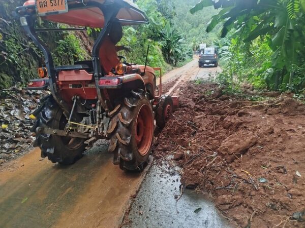 และมีเส้นทางถนนที่มีดินโคลนไถลลงมาปิดเส้นทางถนน ได้ให้ความช่วยเหลือนำรถไถมาดันดินเพื่อเปิดเส้นทางให้สัญจรตามเดิม