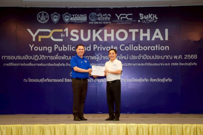 จังหวัดสุโขทัยร่วมกับหอการค้าจังหวัดสุโขทัย และ YEC หอการคำจังหวัดสุโขทัยจัดทำโครงการขับเคลื่อนการพัฒนาจังหวัดสุโขทัย ด้านการพัฒนาเศรษฐกิจ การท่องเที่ยว ตามแผนปฏิบัติราชการประจำปีของจังหวัด ประจำปีงบประมาณ พ.ศ. 2568 และกำหนดให้มีการอบรมเชิงปฏิบัติการฯ ระหว่างวันที่ 14 – 16 สิงหาคม 2568 มีวัตถุประสงค์เพื่อพัฒนาความพร้อมของบุคลากรรุ่นใหม่ในภาคราชการและภาคเอกชน สู่การเป็นผู้นำการเปลี่ยนแปลงในการพัฒนาความร่วมมือระบบราชการและภาคเอกชน ด้านเศรษฐกิจตามสภาวการณ์ที่เปลี่ยนแปลงไป รวมทั้งพัฒนาขีดความสามารถ ความรู้ ทักษะ ทัศนคติ ให้กับผู้ร่วมอบรมทั้งจากหน่วยงานภาครัฐ และภาคเอกชนซุ่งจัดขึ้นเป็นรุ่นแรก เพื่อขับเคลื่อนยุทธศาสตร์ด้วยการพัฒนาแผนพัฒนาจังหวัดให้บรรลุเป้าหมายและสอดคล้องตามแผนพัฒนาระดับจังหวัดสู่ระดับชาติต่อไป