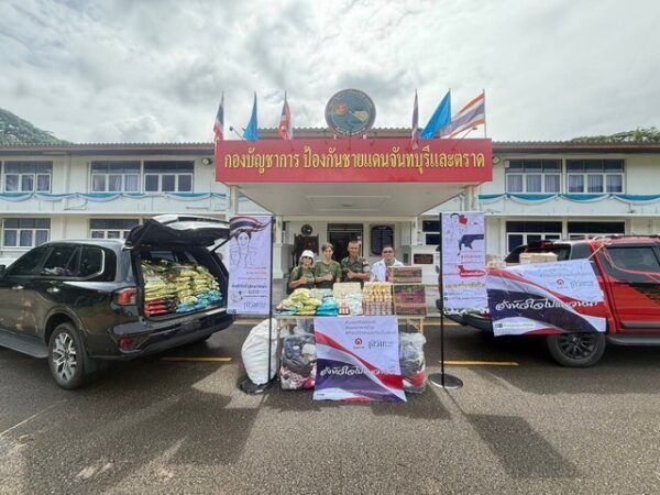 ซึ่งได้จัดเตรียมสิ่งของอุปโภค-บริโภค จำนวนหนึ่ง นำไปมอบให้แก่ทหารกล้า เพื่อสนับสนุนและเป็นขวัญกำลังใจที่ดีให้แก่กำลังพล และเจ้าหน้าที่ทหารที่ปฏิบัติหน้าที่ตามแนวชายแดนบริเวณกองบัญชาการป้องกันชายแดนจันทบุรีและตราด
