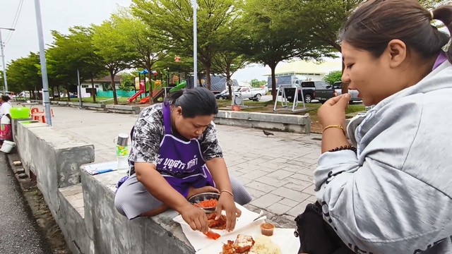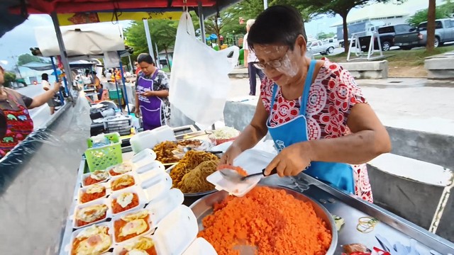 สงขลา-ข้าวผัดแดงไข่ดาวป้าอี๊ด กล่องละ 15 บาท ที่ขายมานานกว่า 30 ปี และเป็นเจ้าเดียวในเมืองสงขลาที่เหลืออยู่ ให้ลูกค้าได้กิน ขายดิบขายดี ลูกค้าเพียบ