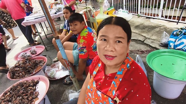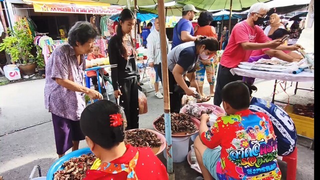สงขลา-นักเรียนสาว ม. 4 โรงเรียนนวมินทราชูทิศทักษิณ ใช้เวลาว่างวันหยุดวันเสาร์วันอาทิตย์ ช่วยคุณแม่ ขายปูแสมดอง ในตลาดนัดอย่างคล่องแคล่ว