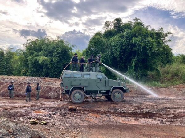 โดยผู้ที่ร้องทุกข์กับ สมาชิกวุฒิสภา ได้ให้รายละเอียดว่า หลังการก่อเหตุ บีอาร์เอ็น มีการ แขวนป้ายผ้า ที่มีข้อความว่า การ ก่อการร้าย ต่อ ผู้ประกอบอุตสาหกรรม ในพื้นที่ครั้งนี้ เป็นการ ปกป้อง ทรัพยากรธรรมชาติ ในพื้นที่ให้กับประชาชน ไม่ให้ถูก นายทุน เข้ามาหาประโยชน์ กับ ทรัพยากรในพื้นที่ ห้ามให้มีการ ขุดดิน ,หิน และ ทำเหมืองแร่ แสดงให้เห็นว่า กิจการ ที่เกี่ยวกับ การ ขุดดิน เหมืองหิน เหมืองแร่ จะถูก วางเพลิง วางระเบิด เพื่อให้ เสียหาย และ หยุด กิจการ