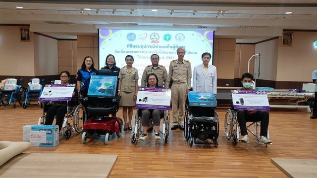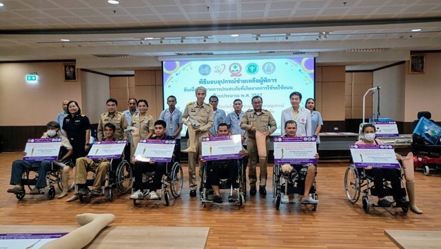 โครงการมอบอุปกรณ์ช่วยเหลือผู้พิการอันเนื่องมาจากผู้ประสบภัยจากการใช้รถใช้ถนน จัดขึ้นภายใต้ความร่วมมือระหว่างสำนักงานขนส่งจังหวัดร้อยเอ็ด โรงพยาบาลร้อยเอ็ด และสำนักงานพัฒนาสังคมและความมั่นคงของมนุษย์จังหวัดร้อยเอ็ด เพื่อช่วยเหลือผู้พิการที่ได้รับผลกระทบจากอุบัติเหตุทางถนน