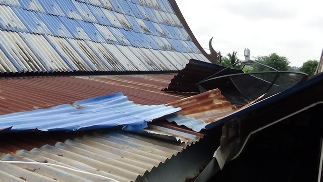 นายสุชิน วรรณโต กล่าวถึงเหตุการณ์หลังคาบ้านหาย ว่า เมื่อ 2 วันก่อนเวลาประมาณ 4 โมงถึง 5 โมง มันมาฝนฟ้าร้องและระเบิดไปเลย ลมพัดหลังคาลอยไปเลย โชคดีอยู่กันข้างล่าง