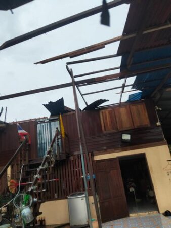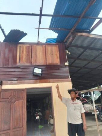 อ่างทอง-พ่อเมืองพร้อมกาชาด ร่วมหัวหน้าส่วนลงพื้นที่ช่วยบ้านชายวัย 74 ปีที่ถูกพายุพัดหลังคาบ้านหายทั้งหลัง