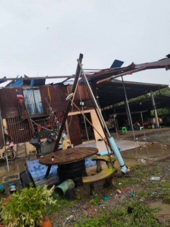 นายสุชิน วรรณโต กล่าวถึงเหตุการณ์หลังคาบ้านหาย ว่า เมื่อ 2 วันก่อนเวลาประมาณ 4 โมงถึง 5 โมง มันมาฝนฟ้าร้องและระเบิดไปเลย ลมพัดหลังคาลอยไปเลย โชคดีอยู่กันข้างล่าง