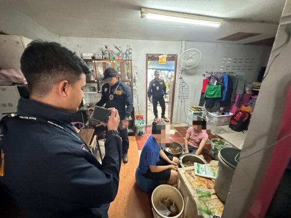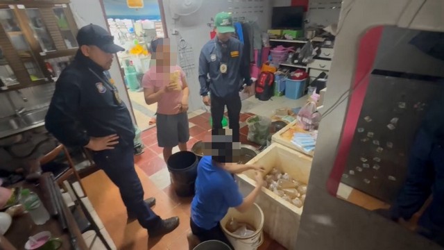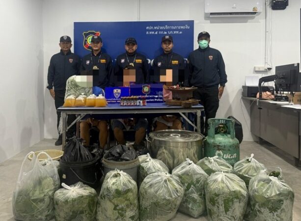 จากการเข้าตรวจสอบ เจ้าหน้าที่พบคนงานชาวเมียนมาร์ 2 คน คือ นางทันดา อายุ 27 ปี และ นางมยัท โน ไว อายุ 31 ปี กำลังต้มและบรรจุใบกระท่อมใส่ถุงพลาสติกเพื่อจำหน่าย ที่บริเวณหลังร้านยังพบของกลางจำนวนมาก ได้แก่ หัวเตาแก๊ส ถังแก๊สขนาดใหญ่ หม้อต้มขนาด 70 ลิตร น้ำกระท่อมแปรรูปกว่า 192 ลิตร และใบกระท่อมสดหนัก 23 กิโลกรัม