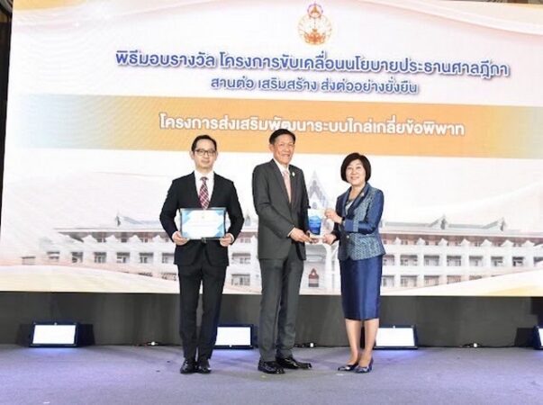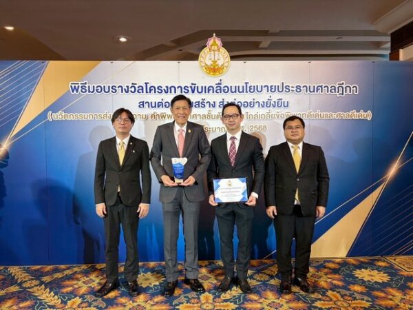 พร้อมด้วย นายปาลิต สันทนาคณิต ผู้พิพากษาหัวหน้าคณะชั้นต้นในศาลเยาวชนและครอบครัวกลาง ปฏิบัติหน้าที่เลขานุการศาลเยาวชนและครอบครัวกลาง นายนัฐวุฒิ นาคเกิด นิติกรชำนาญการพิเศษ รักษาราชการแทนผู้อำนวยการสำนักอำนวยการประจำศาลเยาวชนและครอบครัวกลาง และนายฤทธิชัย สมไพบูลย์ นิติกรปฏิบัติการ เข้ารับมอบโล่รางวัลและประกาศเกียรติคุณ “รางวัลชนะเลิศ กลุ่มศาลพิเศษ-ศาลชำนัญพิเศษ ศาลยุติธรรมที่มีผลการปฏิบัติงานด้านการไกล่เกลี่ยข้อพิพาทดีเด่นโครงการร่วมใจไกล่เกลี่ย 2025” ณ โรงแรมโกลเด้น ทิวลิป ซอฟเฟอริน กรุงเทพ แขวงบางกะปิ เขตห้วยขวาง กรุงเทพมหานคร