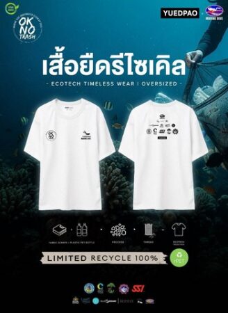 แบรนด์ “YUEDPAO” ได้สนับสนุนเสื้อยืดรีไซเคิลรุ่นพิเศษ ECOTECH TIMELESS WEAR | OVERSIZED รุ่น LIMITED RECYCLE 100% ที่ผลิตจากเศษผ้าและขวดพลาสติก รีไซเคิล มอบให้อาสาสมัครที่เข้าร่วมกิจกรรมกว่า 150 คน