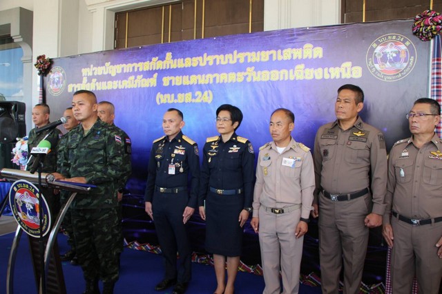 การปฏิบัติงานป้องกันและปราบปรามยาเสพติดในพื้นที่ตามแนวชายแดน เป็นการบูรณาการระหว่างหน่วยงานในพื้นที่ร่วมกับกองกำลังป้องกันชายแดนในการซีลแนวชายแดน ประกอบด้วย กองกำลังสุรศักดิ์มนตรี กองกำลังสุรนารี และพื้นที่ที่รัฐบาลกำหนดให้เป็นพื้นที่ที่มีความจำเป็นเร่งด่วนใน 7 จังหวัด 25 อำเภอ มีหน่วยบัญชาการสกัดกั้นและปราบปรามยาเสพติด สารตั้งต้น และเคมีภัณฑ์ชายแดนภาคตะวันออกเฉียงเหนือ (นบ.ยส.24) เป็นหน่วยรับผิดชอบ ในเขตพื้นที่ตอนในดำเนินการ โดย กองอำนวยการรักษาความมั่นคงภายในราชอาณาจักรจังหวัด (กอ.รมน.จังหวัด) ทั้ง 20 จังหวัดบูรณาการกับส่วนราชการในจังหวัด ร่วมกันดำเนินการ ผลจากการดำเนินงานด้านยาเสพติดตั้งแต่