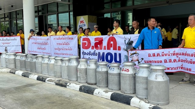 เมื่อวันที่ 23 กันยายน 68 ผู้สื่อข่าวรายงานว่าที่ องค์การส่งเสริมกิจการโคนมแห่งประเทศไทย (อ.ส.ค.) ต.คลองหนึ่ง อ.คลองหลวง จ.ปทุมธานี ชาวสมาชิกสหกรณ์สมาชิกชุมนุมสหกรณ์นมไทย – เดนมาร์ค จำกัด (เขตภาคกลาง) จำนวน 15 สหกรณ์กว่า 100 รายที่ได้นำนมสดมาเทบริเวณหน้า องค์การส่งเสริมกิจการโคนมแห่งประเทศไทย (อ.ส.ค.) พร้อมนำป้ายมายืนประท้วงหลังได้รับผลกระทบจากหนี้ค้างค่าน้ำนมดิบของ องค์การส่งเสริมกิจการโคนมแห่งประเทศไทย(อ.ส.ส.ค.) กับ สหกรณ์ จำนวนเงินทั้งสิ้นกว่า 600 กว่าล้านบาท โดยมี นายธีระชัย เกรียงไกรเวคิน ประธานกรรมการชุมนุมสหกรณ์นมไทย – เดนมาร์ค จำกัด ยื่นหนังสือพร้อมกับเทนมเพื่อประท้วงถึงเรื่องดังกล่าว