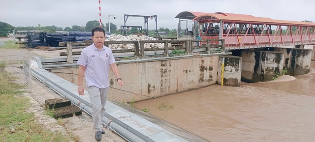 2. ณ ประตูระบายน้ำสบทา ต.ปากบ่อง เปิดประตูระบายน้ำทุกบานประตู จำนวน 5 ประตู ระดับน้ำยังปกติ