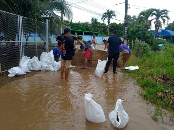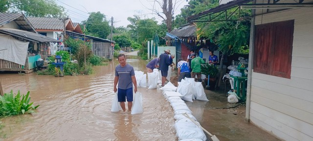 6. พื้นที่ ม.3 ตำบลบ้านเรือน ประสาน อบต.บ้านเรือน กำนัน ผญบ.เข้าช่วยเหลือนำกระสอบทราย เพื่อวางเป็นแนวกั้นทางน้ำเพื่อมิให้เข้าท่วมนาข้า วของราษฎร