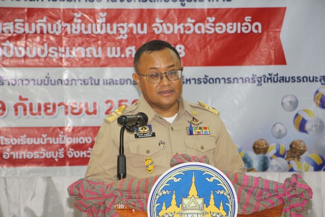 เวลา 09.30 น. ณ ตำบลอุ่มเม้า อำเภอธวัชบุรี จังหวัดร้อยเอ็ด นายชัชวาลย์ เบญจสิริวงศ์ ผู้ว่าราชการจังหวัดร้อยเอ็ด เป็นประธานเปิดโครงการ ส่งเสริมกีฬาขั้นพื้นฐาน จังหวัดร้อยเอ็ด ประจำปีงบประมาณ พ.ศ. 2568 โดยมี นายเก่ง แกล้วกล้า ท่องเที่ยวและกีฬาจังหวัดร้อยเอ็ด พร้อมหัวหน้าส่วนราชการ นายอำเภอธวัชบุรี คณะครู และนักเรียน เข้าร่วม