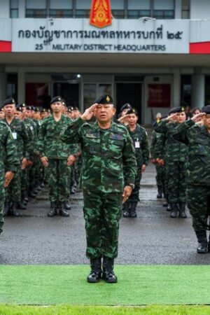 (สุรินทร์) มทบ.25 จัดกิจกรรมเคารพธงชาติไทยและร้องเพลงชาติไทย เนื่องในวันพระราชทานธงชาติไทย 28 กันยายน (Thai National Flag Day) ประจำปี 2568