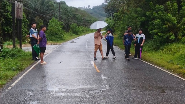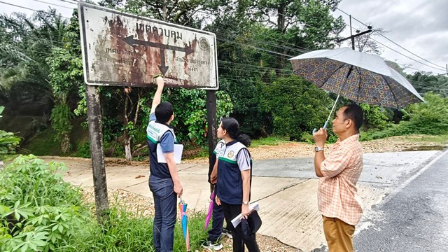 พังงา-องค์กรปกครองส่วนท้องถิ่นลงพื้นที่แก้ไขปัญหาความเดือนร้อนของชาวบ้านเรื่องถนน ต.ท่านา ที่ชำรุด