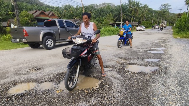 พังงา-องค์กรปกครองส่วนท้องถิ่นลงพื้นที่แก้ไขปัญหาความเดือนร้อนของชาวบ้านเรื่องถนน ต.ท่านา ที่ชำรุด